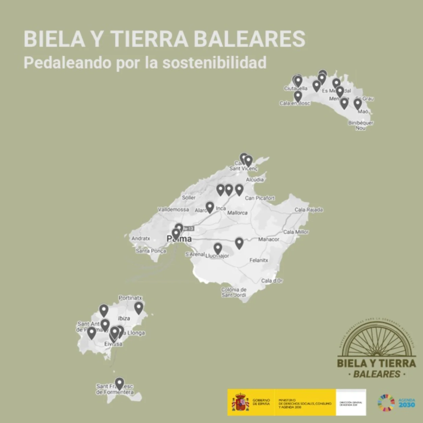 El proyecto Pedaleando por la sostenibilidad, nuestra alimentación como motor de cambio: generando conocimiento y divulgando buenas prácticas agroalimentarias alineadas con ODS a través de una ruta en bicicleta por territorio balear cuenta con el apoyo del Ministerio de Derechos Sociales, Consumo y Agenda 2030 en el marco de las subvenciones destinadas a la implementación de la Agenda 2030 para el Desarrollo Sostenible.