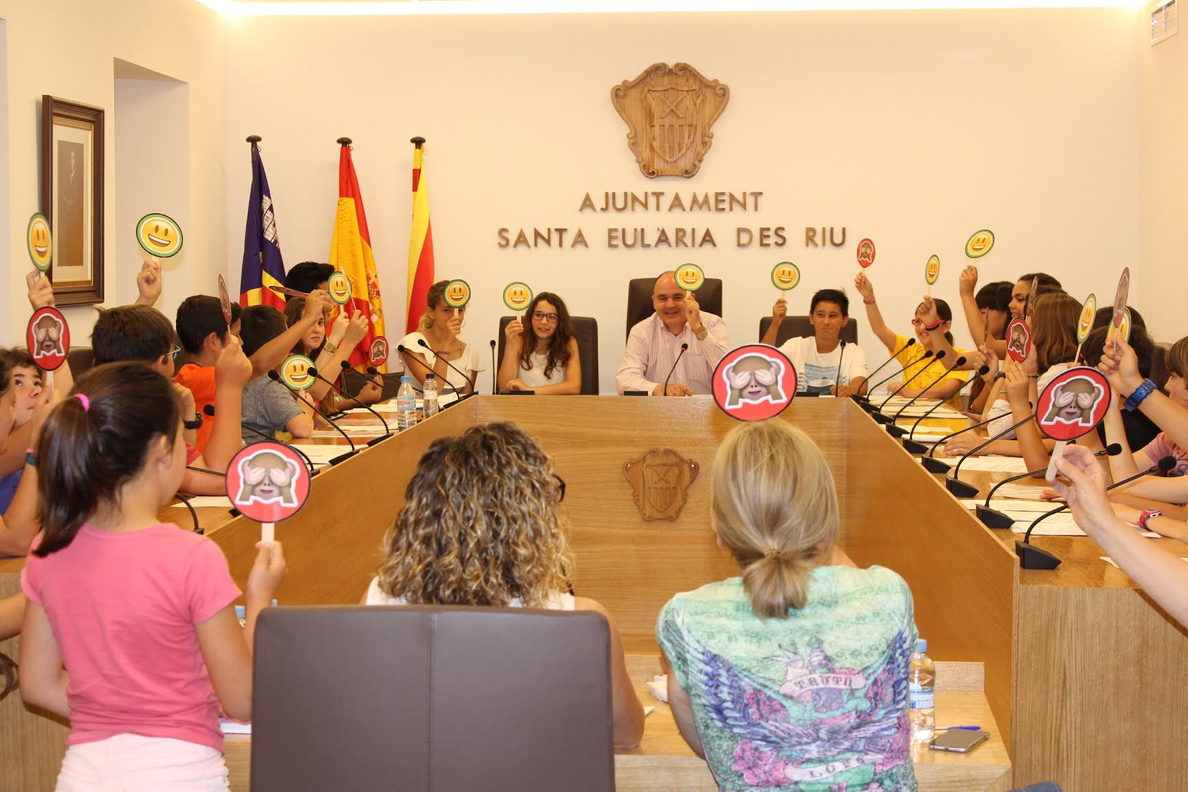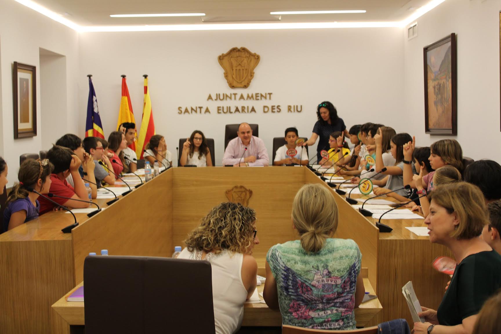 @Noudiari/ Aquest matí ha tingut lloc, a l’Ajuntament de Santa Eulària, el segon i últim Ple Infantil i Juvenil del present curs, una cita en que representants de set col·legis públics del municipi (des de Sant Ciriac han excusat la seva presència per preparar exàmens), els dos instituts i dels alumnes eulariencs que estudien a sa Blanca Dona i Balàfia (centres d’altres municipis però amb molta presència d’estudiants locals) han pogut presentar les seves propostes i demandes per tal de millorar les infraestructures i dotacions dels seus centres i pobles per tal de satisfer les necessitats de la població menor d’edat de Santa Eulària des Riu.