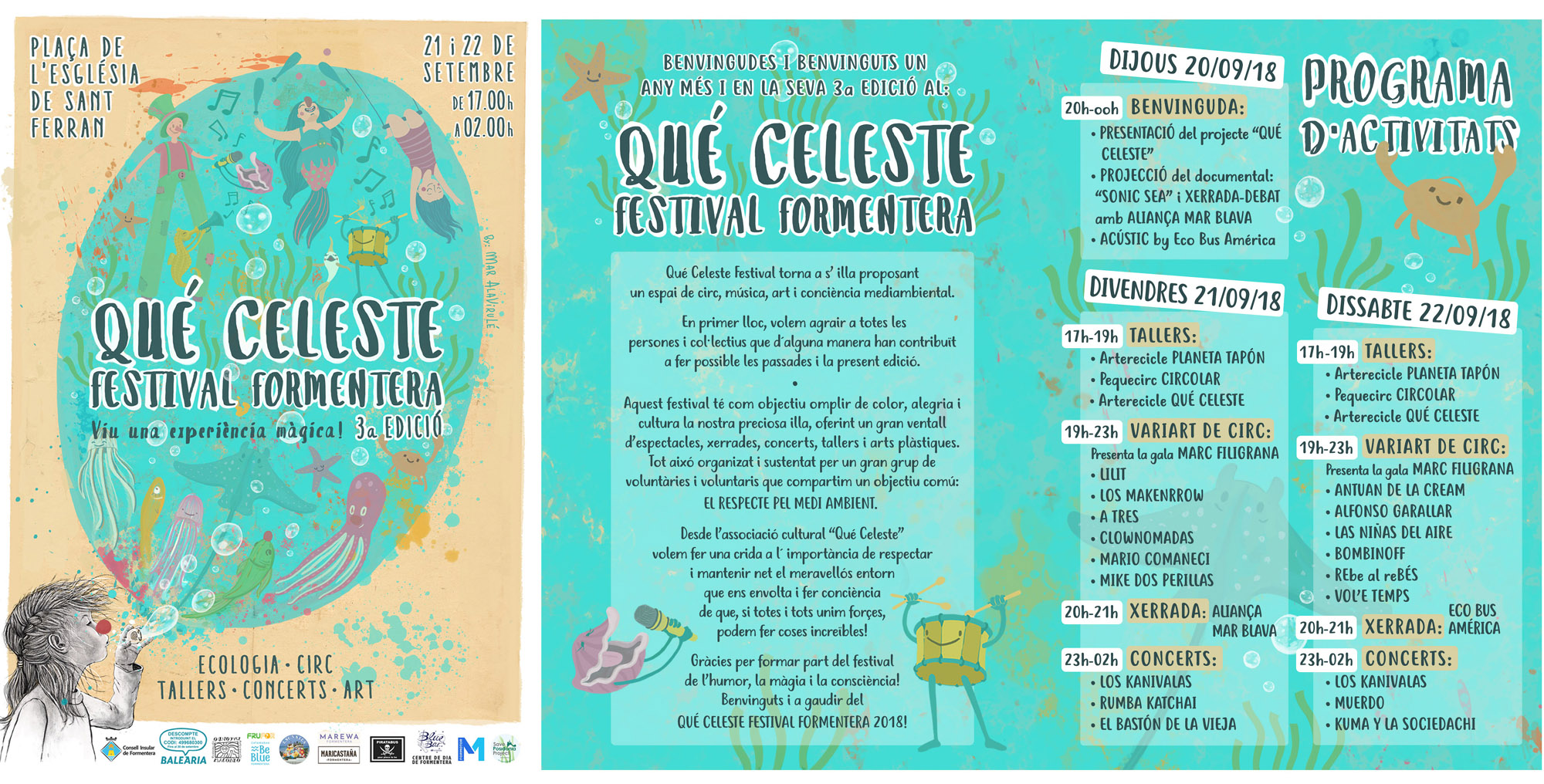 Aquesta acció s’emmarca dins les activitats prèvies a la celebració de la tercera edició del Festival Qué Celeste, que s’inicia aquest dijous a les 20 hores a la plaça de Sant Ferran amb la presentació del projecte de l’entitat i la posterior projecció del documental “Sonic Sea” acompanyada d’una xerrada i d’un concert acústic de na Jorien i en Guille, d’Eco Bus America i Duo Todo.