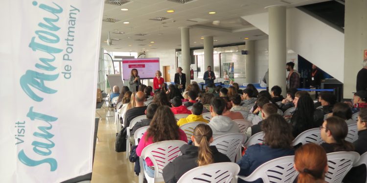La alcaldesande Sant Antoni, Neus Mateu; la concejala de Interior y Fomento de la Ocupación, Maria Ribas, y la directora insular del SOIB de Eivissa, Dolors Roig, han presentado esta primera jornada dando la bienvenida a los participantes, entre los que han asistido principalmente alumnos del IES Sa Serra y el IES Quartó de Portmany.