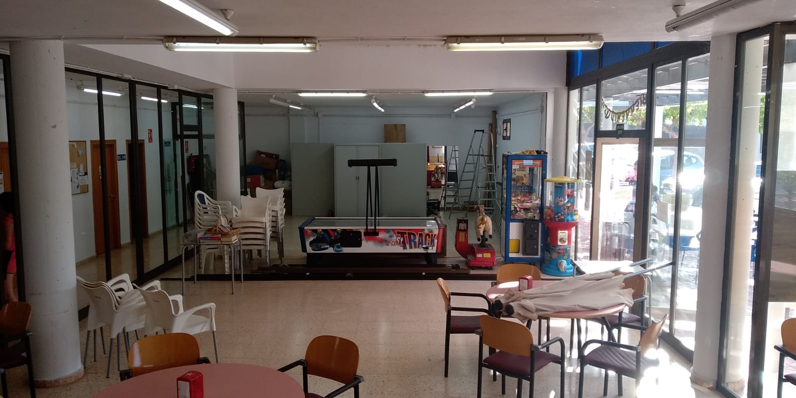 Todo se hará con un cierre de aluminio y vidrio de tipo acordeón para posibilitar que los espacios se puedan adaptar a las necesidades de cada taller, curso o reunión, reconvirtiéndose en 3, 2 o una sola sala y así hacer compatibles las diferentes actividades del local, como los talleres de pintura, yoga, clases de repaso, espacio para preparar la llegada de los Reyes Magos a Nadal…