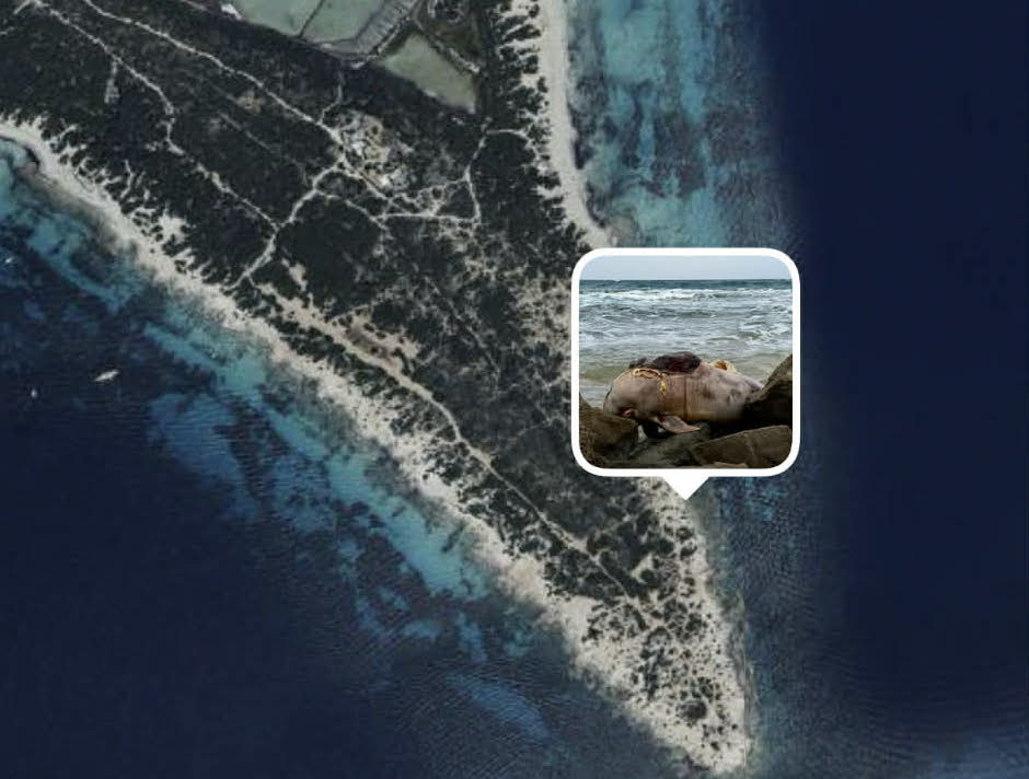 Un delfín ha sido hallado sin vida en la zona de la playa de ses Salines, Sant Josep, en Ibiza, en un avanzado estado de descomposición y con evidentes signos de daños en el cuerpo que podrían deberse al impacto de alguna embarcación. El animal fue localizado sobre las rocas por un paseante que se encontraba caminando por la zona con su perrita.