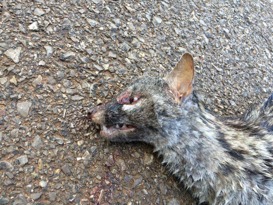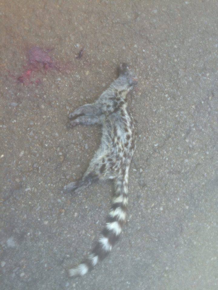 @Noudiari/Un vecino de la isla ha encontrado esta mañana el cadáver de una gineta atropellada en la carretera de Santa Gertrudis a Sant Mateu. Es una especie en peligro de extinción en Ibiza y Formentera, que pierde ejemplares cada año, sobre todo por los vehículos que los arrollan cuando cruzan las carreteras.