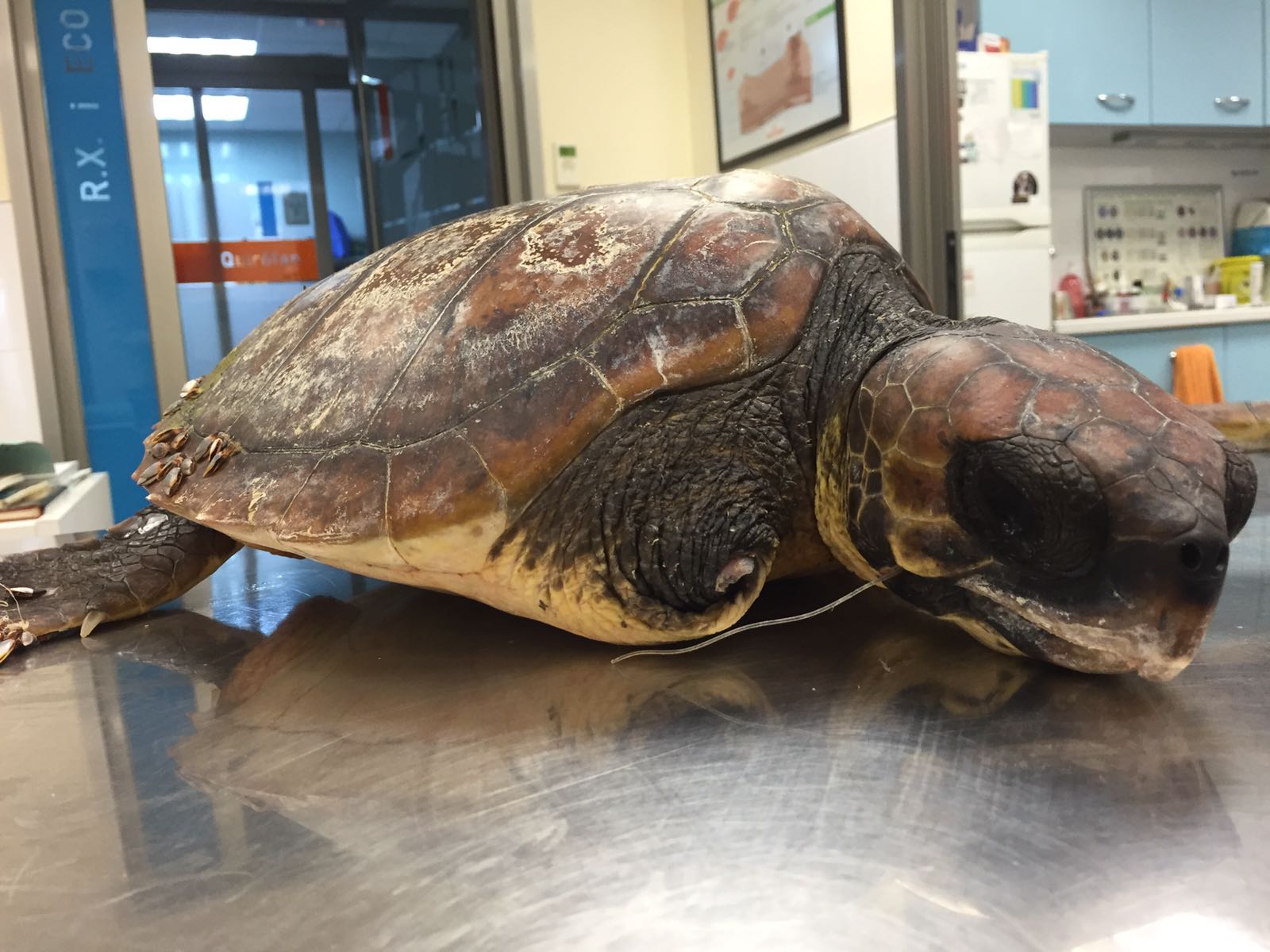 La tortuga pasó su primera noche en las instalaciones de Palma Aquarium, para ser trasladada posteriormente al Hospital Veterinario Aragó, donde ha sido intervenida quirúrgicamente.