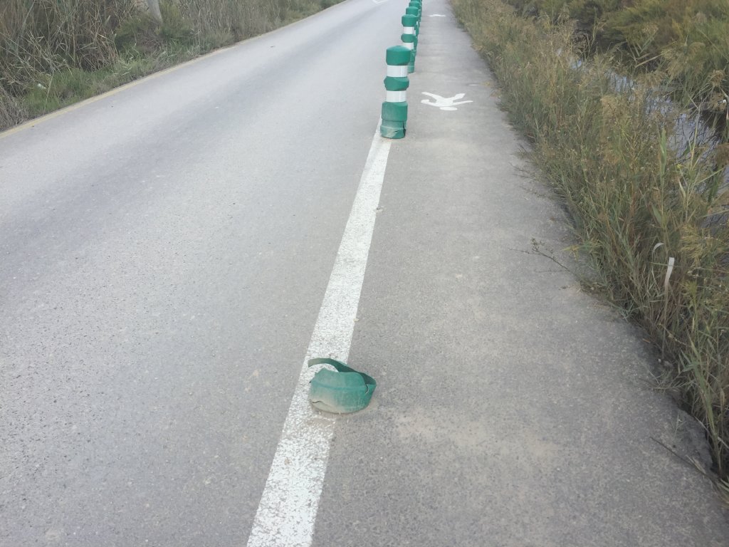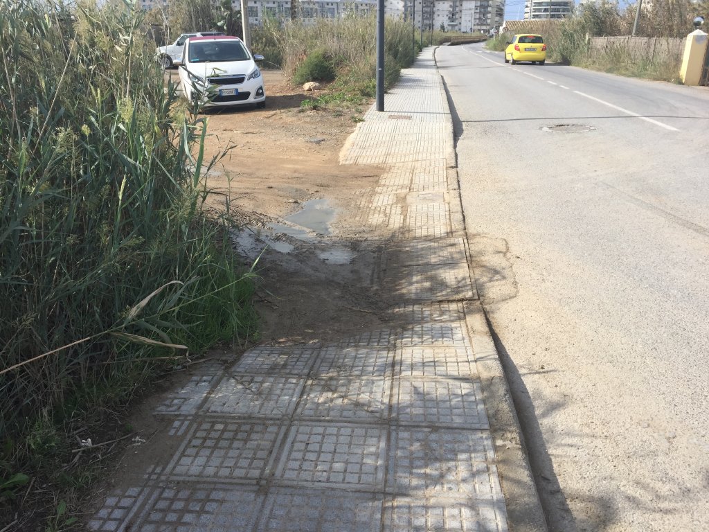 «Como se puede observar en las imágenes, el asfalto presenta grietas, han sido arrancados pivotes de separación de la cuneta y la carretera, hay baches junto a las tapas de alcantarilla y varios tramos de la acera se encuentran en pésimo estado», informa la formación municipal.