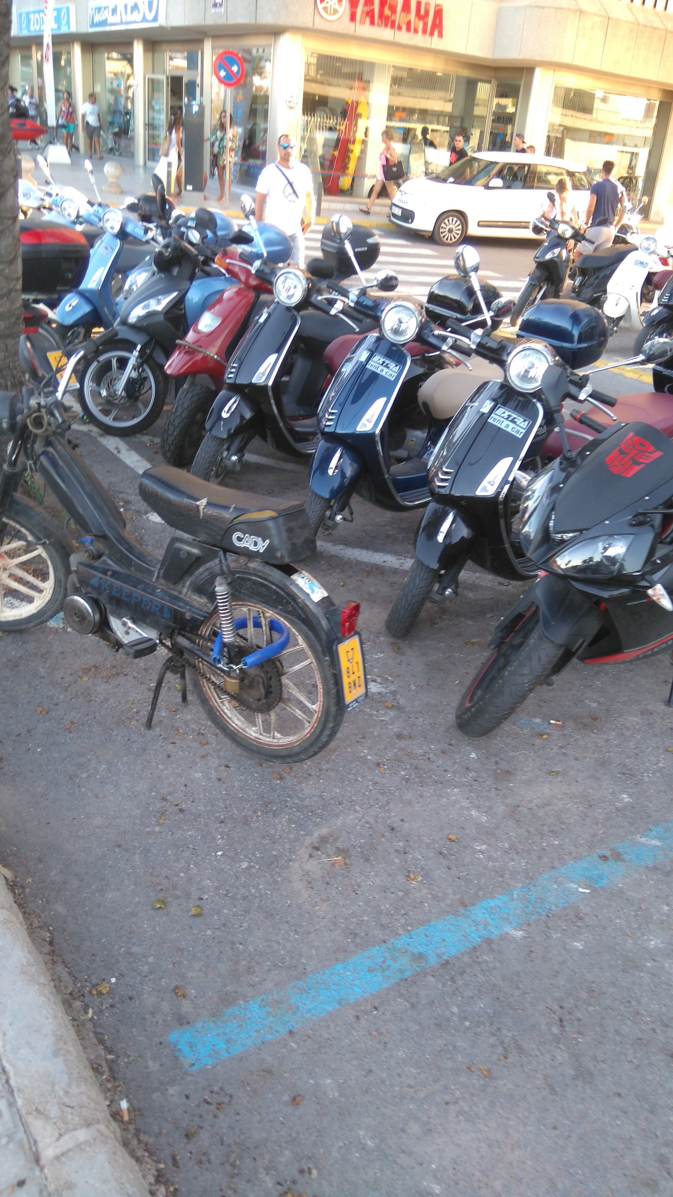 Que poca verguenza , hoy durante todo el dia ha estado ocupada la terraza de todos los rentamotos, y todos los parkings publicos , incluso el de la raya amarilla se ocupa durante las 24 horas del dia.