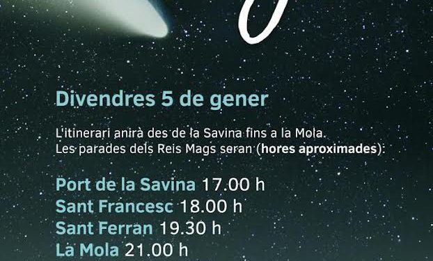 Els reis Mags d’Orient visitaran com cada any l’illa de Formentera divendres que ve, dia 5 de gener, en un itinerari que els portarà des del port de la Savina, on arribaran sobre les 17 hores, fins a la Mola, on està previst que arribin sobre les 21 hores.