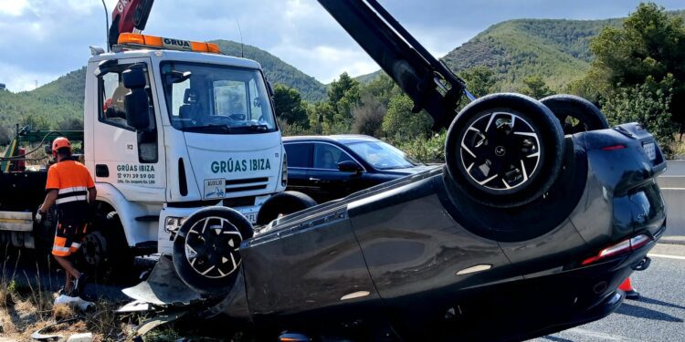 Hasta el lugar se desplazaron agentes de la Guardia Civil de Tráfico, que se encargaron de regular la circulación durante las labores de retirada. La operación fue ejecutada por dos unidades de asistencia en carretera de Grúas Ibiza, que utilizaron una grúa pluma para recolocar el vehículo accidentado y despejar la vía.