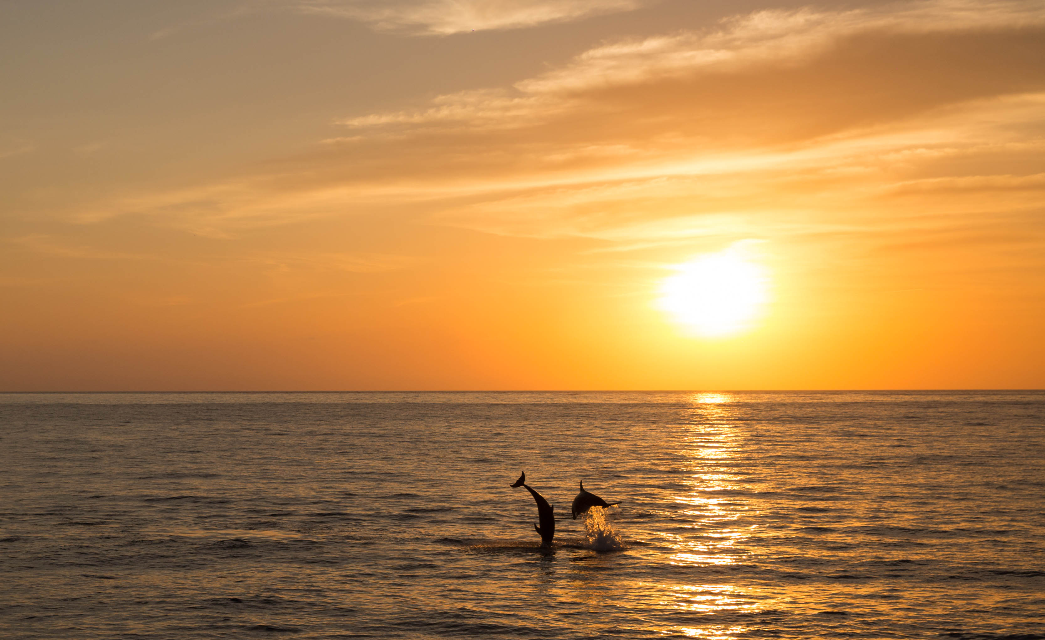 Imagen de los delfines en la puesta de sol de Sant Antoni. Foto: Piers Dupoy de Ibiza Film Crew y de Float Your Boat parties