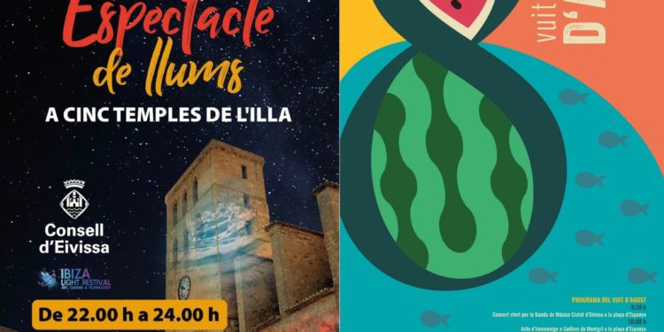 Ya por la noche de 22 a 24 horas, habrá espectáculo de luces en cinco templos de la isla: las iglesias de Sant Josep. Sant Joan, Santa Gertrudis, Sant Antoni y la catedral de Santa Maria de Ibiza con proyecciones a cargo de Ibiza Light Festival.