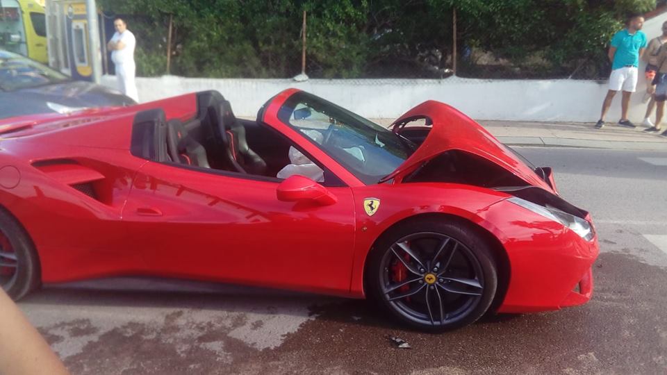 Daños materiales y un herido leve. En el vehículo contra el que colisionó el Ferrari, un Renault Modus, iban dos ocupantes, uno de los cuales ha tenido que ser atendido por los sanitarios del 061 por problemas en el cuello . En el momento de la colisión, los ocupantes del Renault se dirigían a trabajar al restaurante Ses Eufabies, en Cala Tarida.