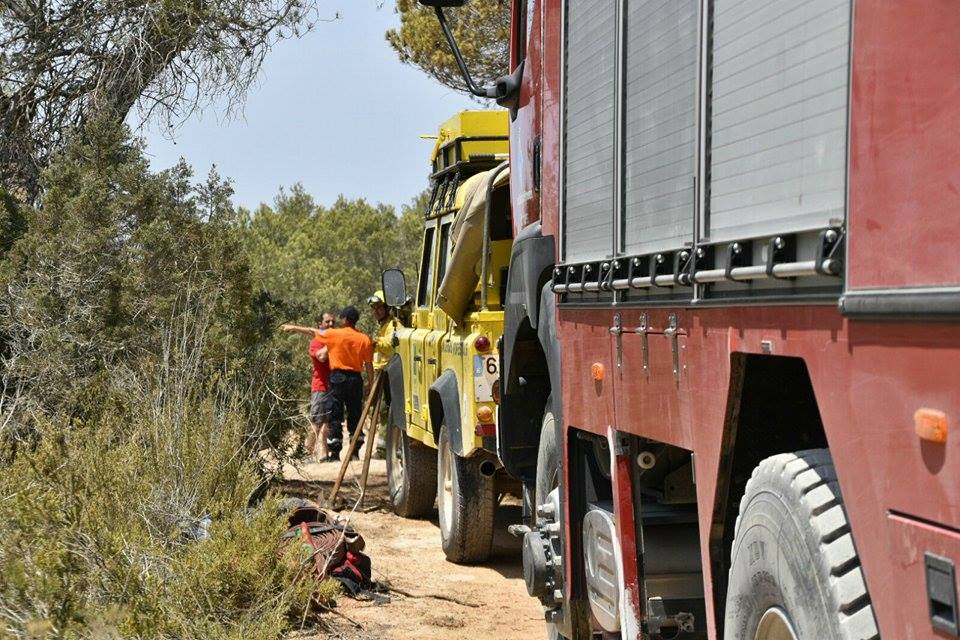 El camión de los bomberos del Consell de Formentera y agentes del Ibanat han apoyado en las tareas de extinción, en las que también han colaborado Protección Civil, Guardia Civil y Policía Local.
