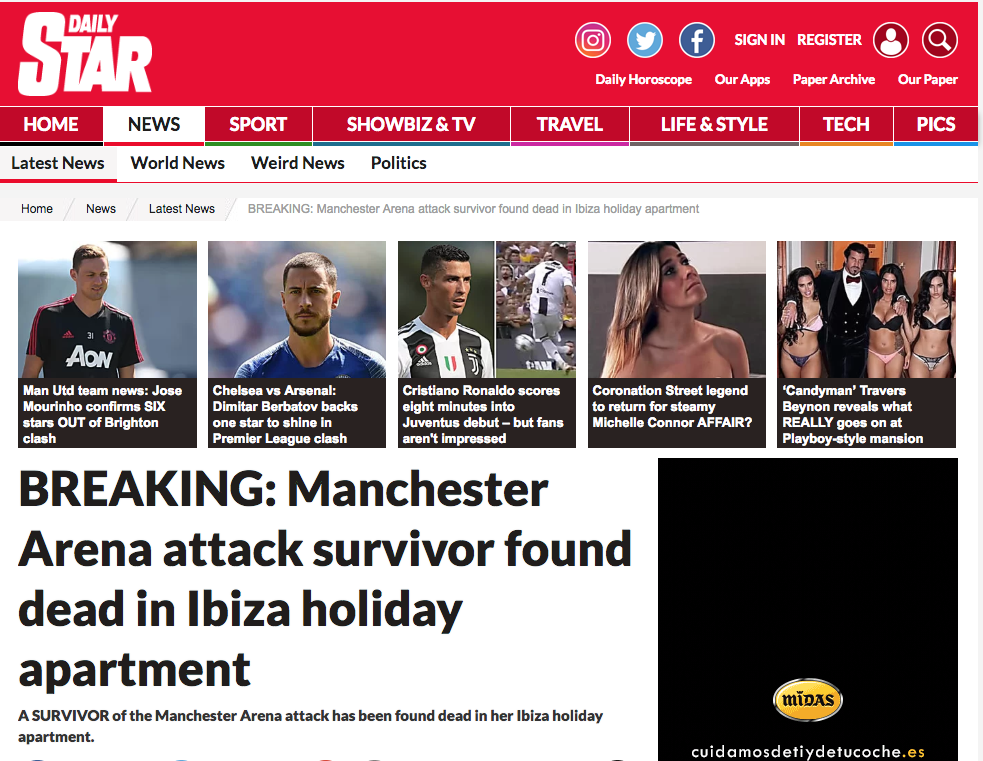 @Noudiari/ La joven británica encontrada muerta este viernes en unos apartamentos turísticos de Sant Antoni era una superviviente del atentando del Manchester Arena del pasado 22 de mayo de 2017.