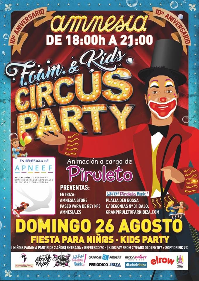 @Noudiari / Amnesia acogerá este domingo, 26 de agosto, la décima edición de la fiesta de la espuma que anualmente organiza a beneficio de APNEEF, Asociación de Personas con Necesidades Especiales de Eivissa y Formentera. El evento comenzará a las 18 horas y contará con varias actividades para los más pequeños como colchonetas hinchables y pintacaras. La animación correrá a cargo de Piruleto.
