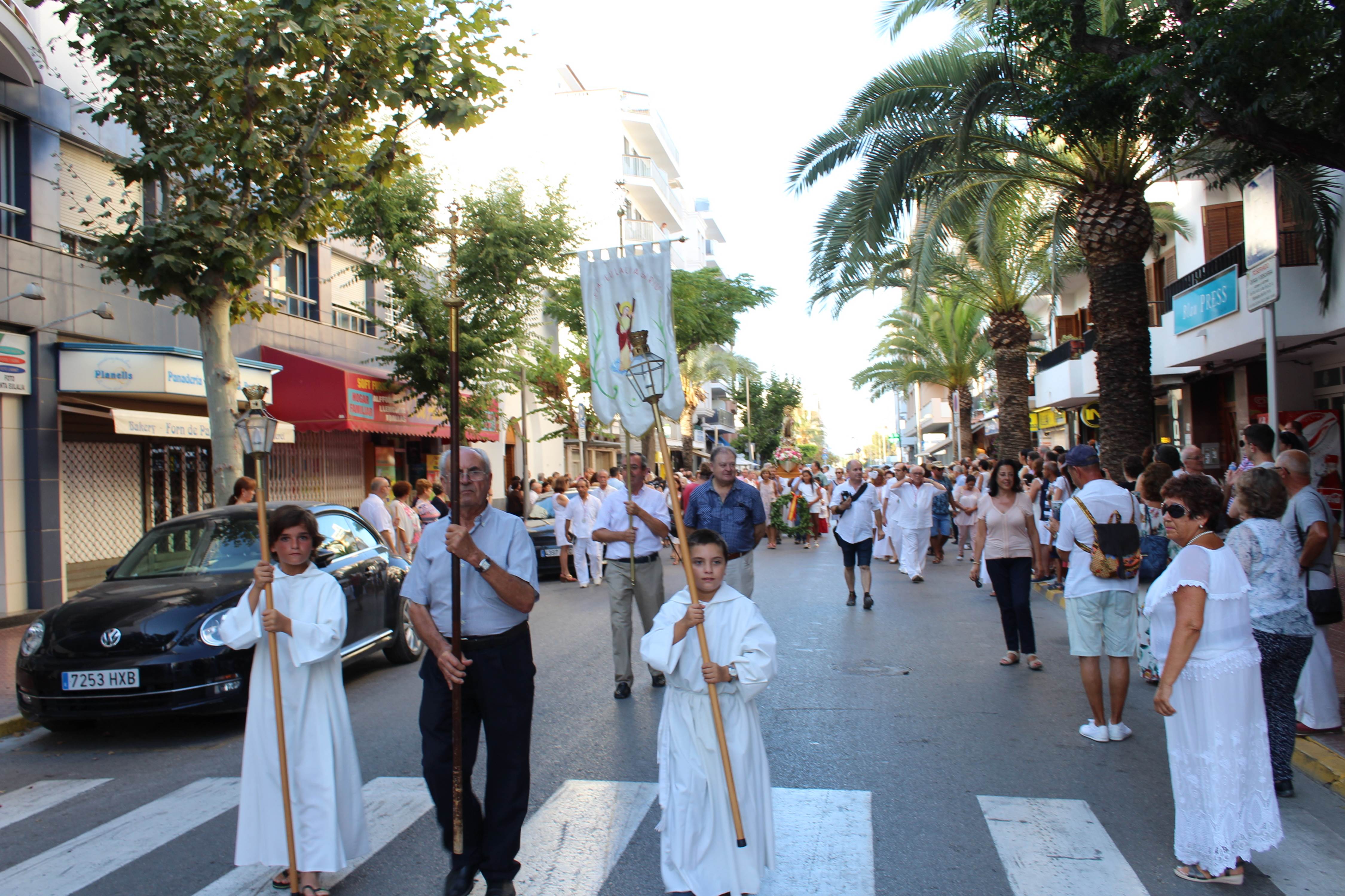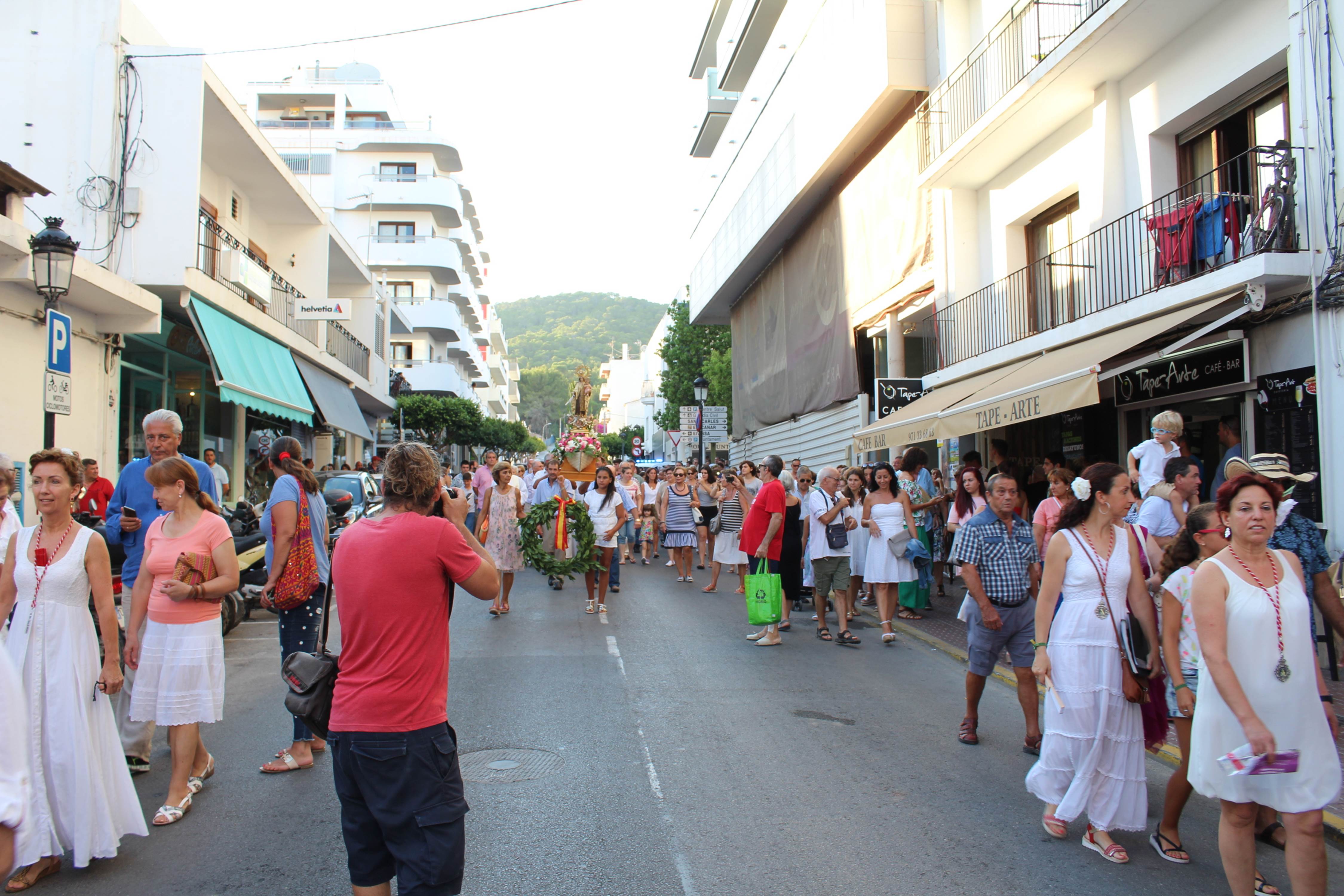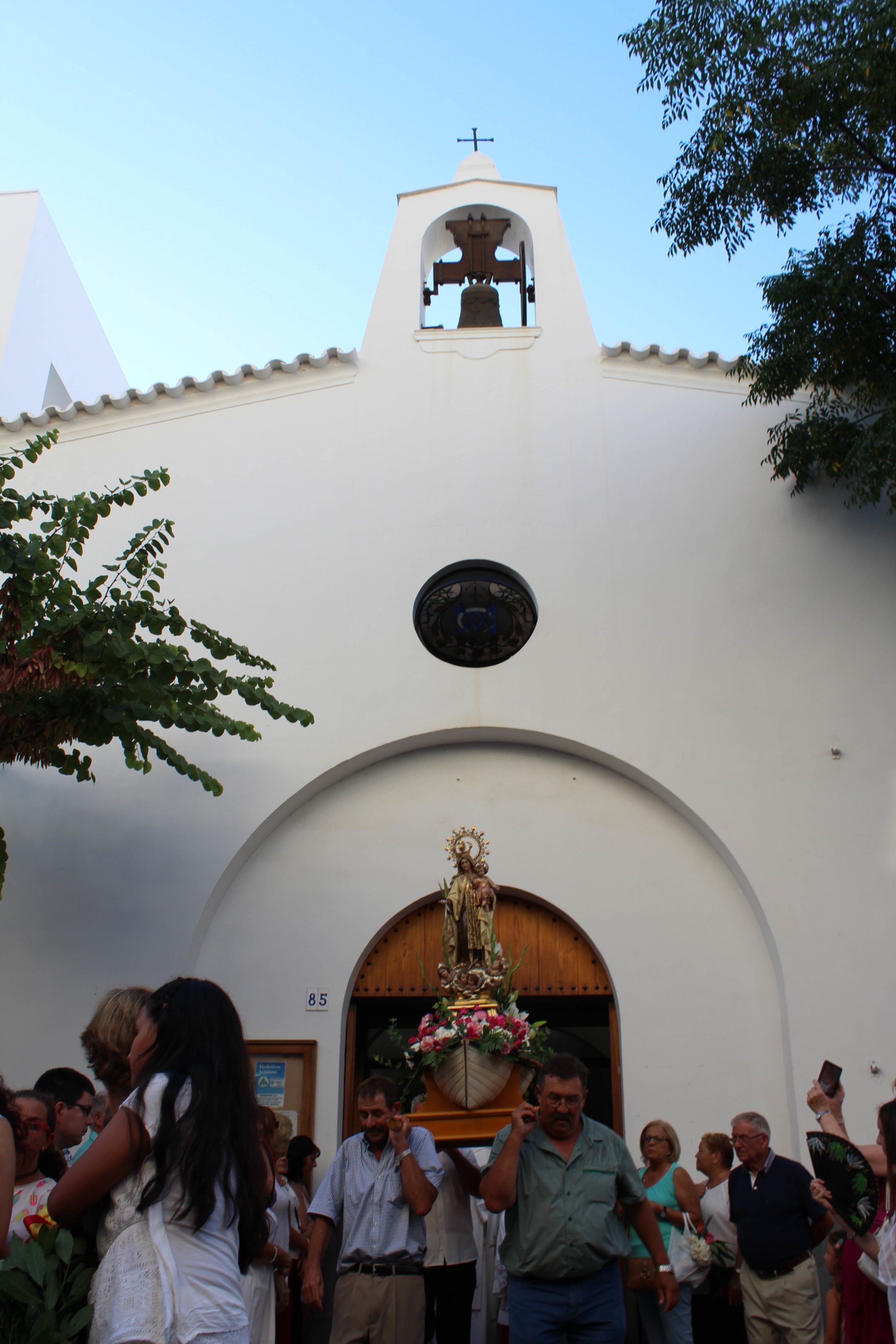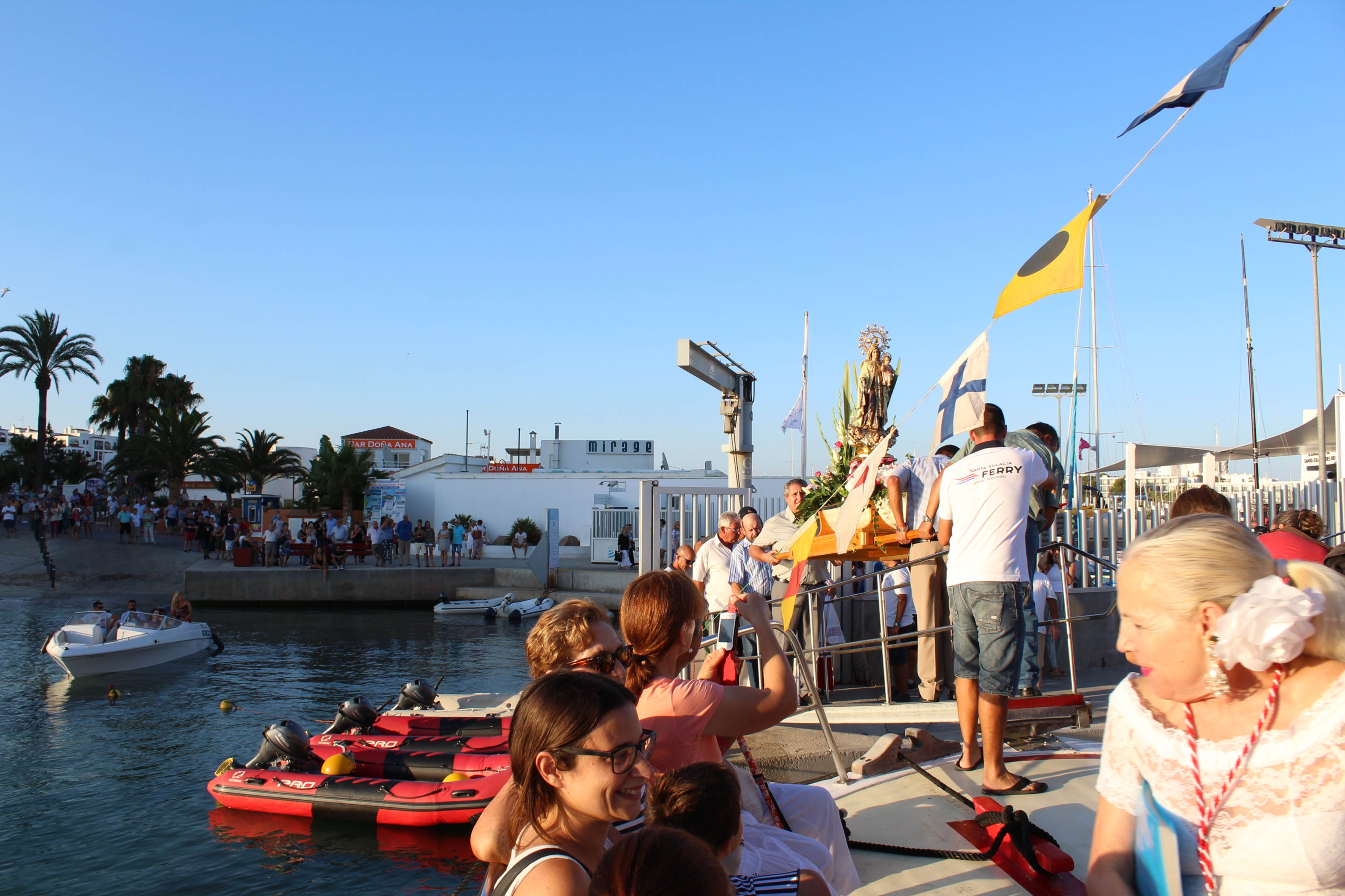 @Noudiari / El pueblo de Santa Eulària des Riu celebró ayer la festivad de la Virgen María de Carmen, patrona del Mar con una misa oficiada a la Capilla de Lourdes de la calle Sant Jaume dónde, posteriormente, se ha sacado en procesión la imagen del Carmen hasta la Escuela Municipal de Vela para la salida en ‘golondrinas’.