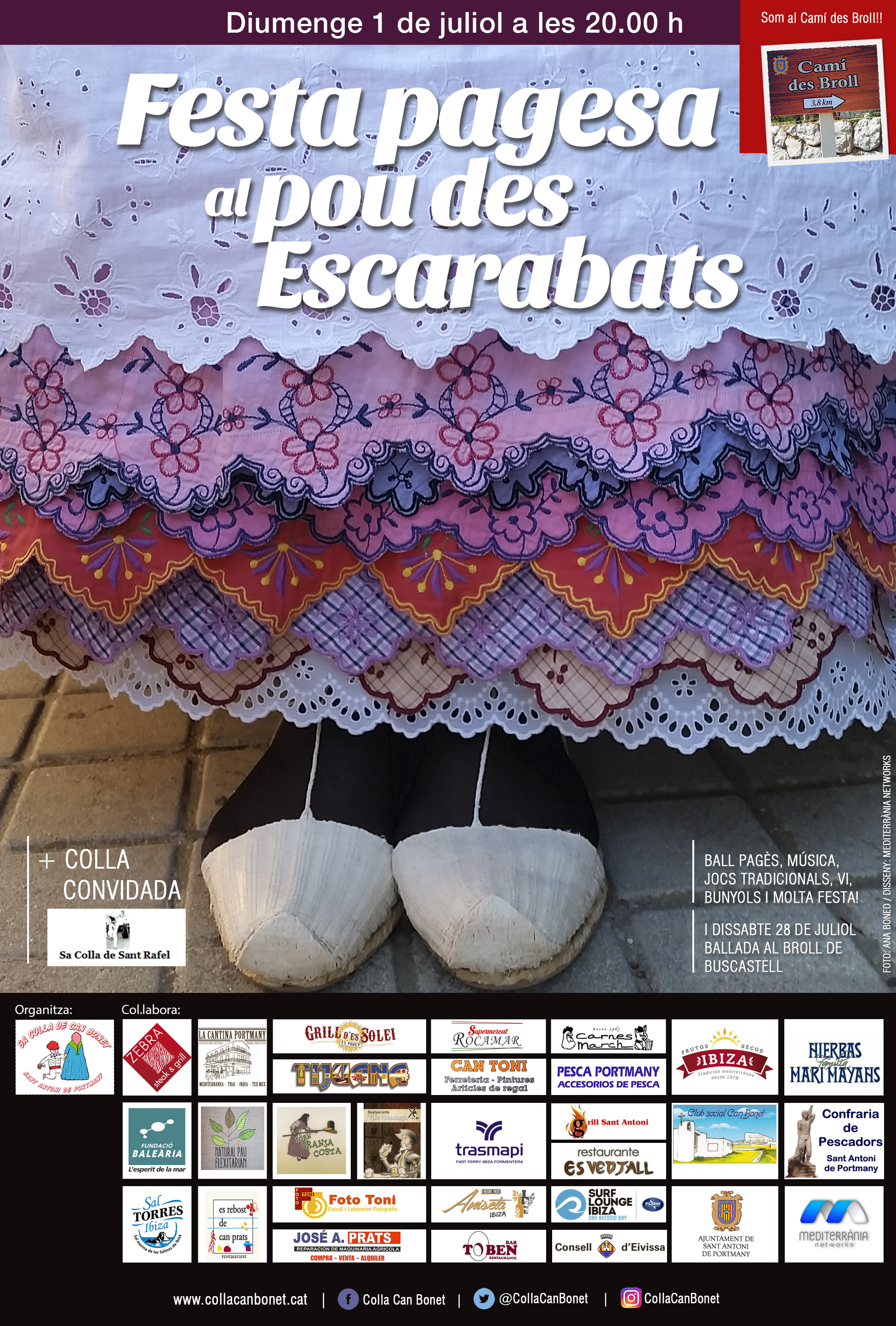 Esta actividad cuenta con la colaboración de la Consejería de Cultura del Consell Insular d’Eivissa y la concejalía de cultura popular y fiestas tradicionales del Ayuntamiento de Sant Antoni de Portmany y los vecinos de la zona.
