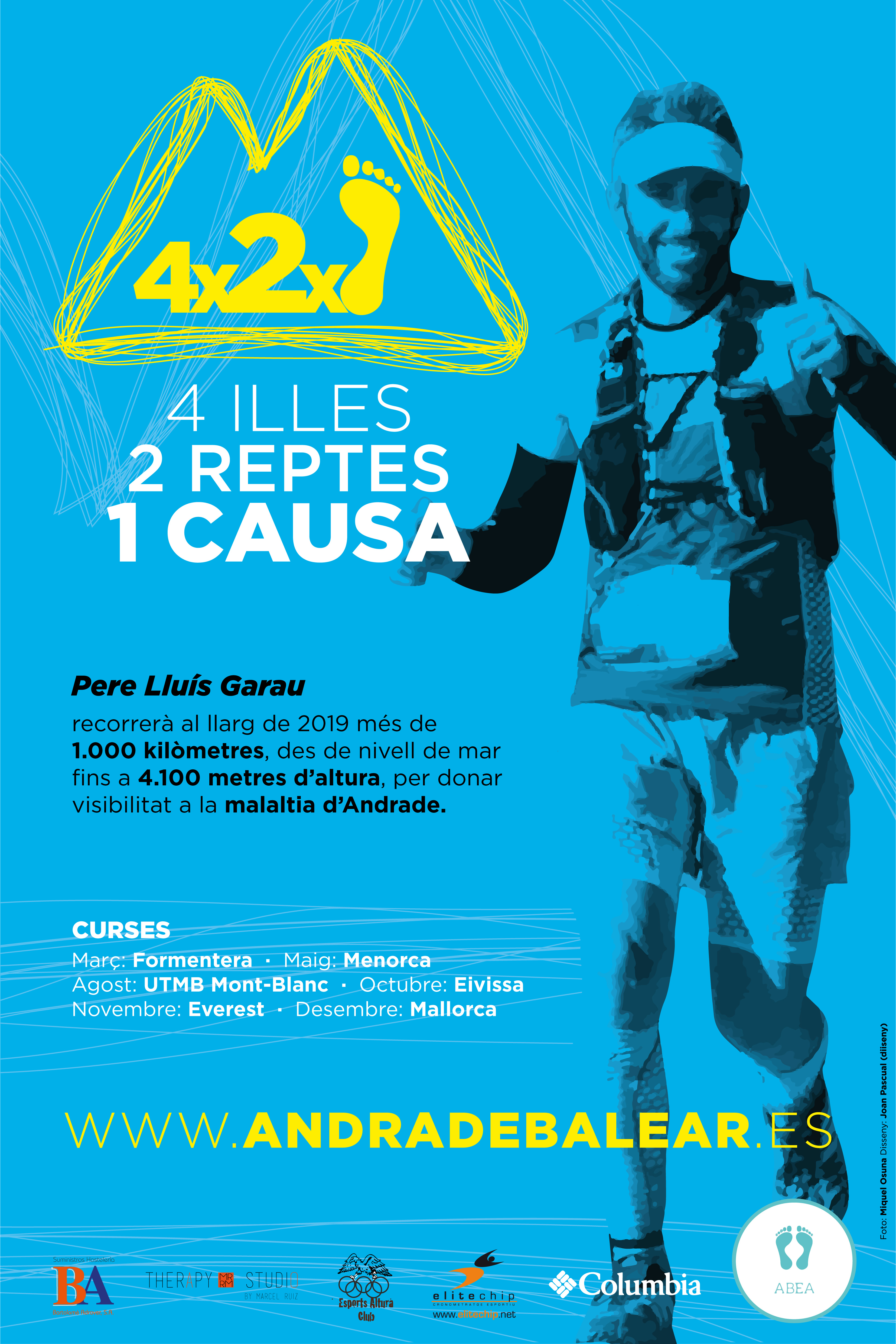 Esta carrera ‘4 islas y 2 retos’ tiene con una causa común: dar visibilidad a esta enfermedad rara y hereditaria, de la que Baleares es el quinto foco mundial. Los fondos solidarios obtenidos con este múltiple reto se destinarán a la Asociación Balear de la Enfermedad de Andrade (ABEA) y más concretamente al apoyo psicológico y al tratamiento podológico de las personas afectadas.