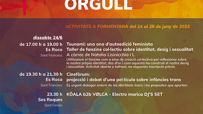 Formentera celebra el Dia Internacional de l’Orgull LGTBIQA+, i des de l’àrea d’Igualtat del Consell de Formentera s’ha preparat una sèrie d’activitats que es portaren a terme el 24, el 27 i el 28 de juny, Dia de l’Orgull. Les accions estan destinades a conscienciar, donar veu i remarcar els drets i les realitats del col·lectiu a l’illa de Formentera.