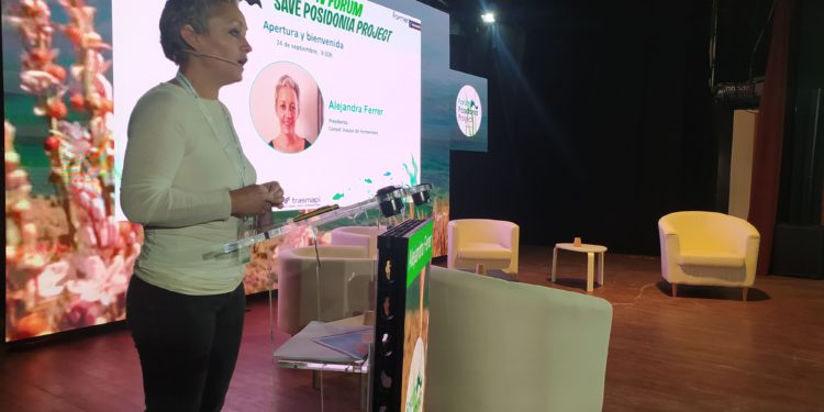 La presidenta y consellera de Turismo del Consell de Formentera, Alejandra Ferrer, ha presentado hoy la cuarta edición del Foro Save Posidonia Project que tiene lugar hoy en la Sala de Cultura (Cine). En el primer bloque de esta jornada, la presidenta ha presentado las conclusiones de los grupos de trabajo que se organizaron ayer con representación del sector empresarial, la ciudadanía, ONG y expertos para poner en común la situación actual y hacer una hoja de ruta.