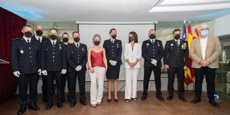 A continuació, tres agents del cos de la Policia Local de Formentera, Marc Aragay Torres, Marc Roig Ferrer i José Antonio Perera Escandell, han rebut la Creu al Mèrit Policial amb Distintiu Verd per la gran feina, tasca i esforç realitzat el passat dia 24 de juliol, dirigint amb èxit les accions que varen portar a la detenció del patró d’una embarcació, reincident (13 de maig) d’un presumpte delicte de tràfic il·legal de persones migrades, amb l’agreujant de posar-los en perill i per traficar menors d’edat, alguns de poca edat.