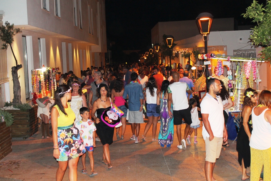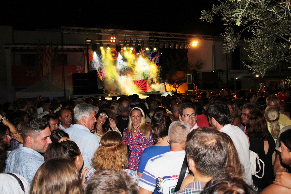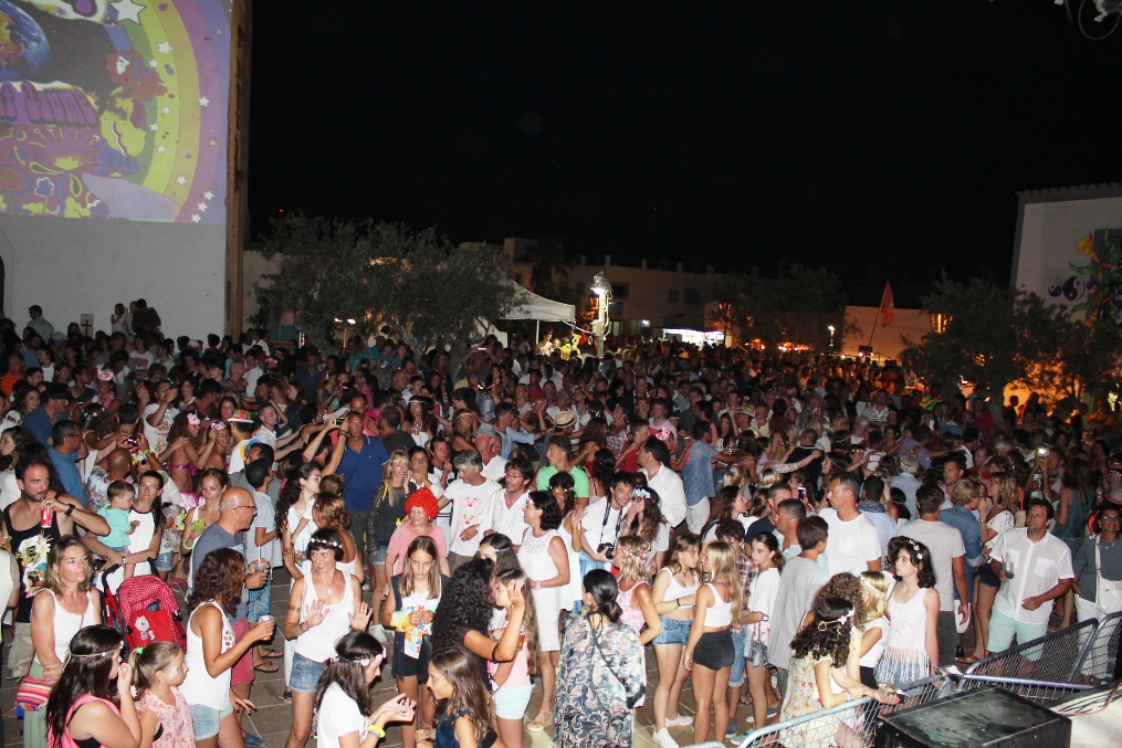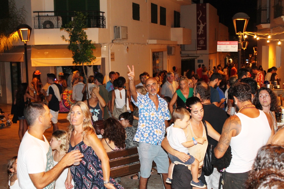 DJ Pharma, como es tradición, ejerció de maestro de ceremonias en una fiesta hippy que se desarrolló hasta bien entrada la madrugada y que contó, además, con DJ Gunter Blue y DJ Javi Box. Este sábado continuarán los festejos, esta vez sin fuegos artificiales por el riesgo de incendios forestales, con la tradicional misa de Sant Jaume, ball pagés y el concierto de Mishima, Ariel Roth y Los Zigarros como platos fuertes.
