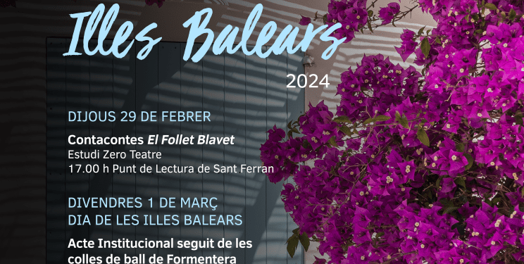 El Consell Insular de Formentera ha programado una serie de actividades para conmemorar el Día de las Islas Baleares, que se celebrará el viernes 1 de marzo, y que incluyen cuentacuentos, ball pagès, teatro y conciertos, ha informado la institución insular en un comunicado de prensa.