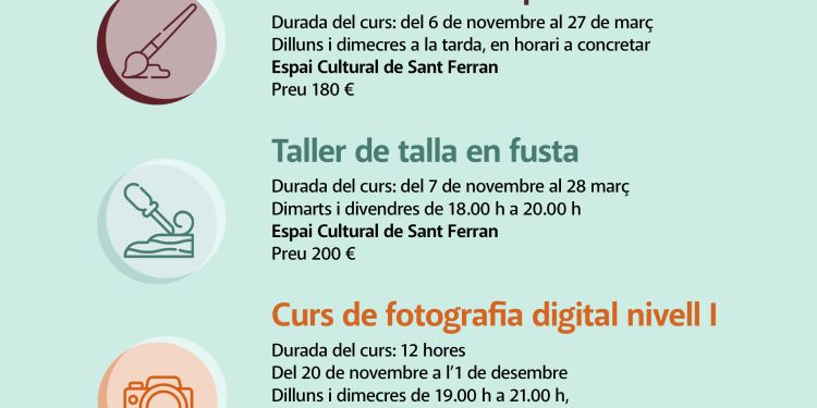 creativitat, creixement personal i emoció», han resaltat les citades fonts. Aquesta activitat s’ofereix els dilluns i els divendres en horari de tarda del 26 de novembre al 7 de març a l’Espai Cultural de Sant Ferran i el preu per persona és de 190 euros.