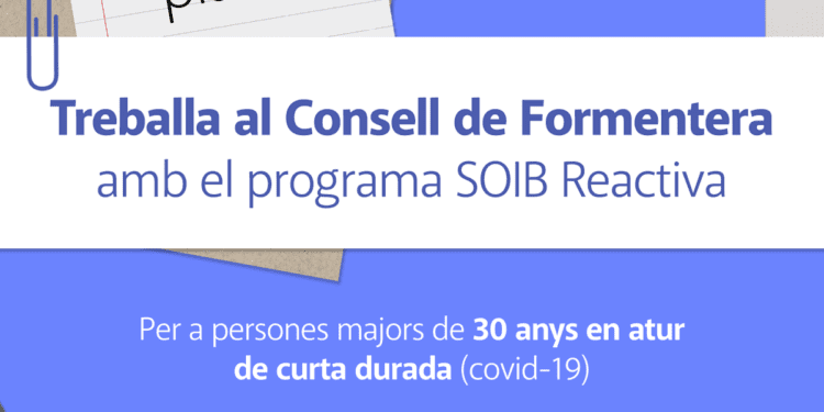 El Consell de Formentera, a través del área de Emprendimiento y Desarrollo Local, informa que se ha abierto una nueva convocatoria del programa SOIB Reactiva para trabajar en el Consell durante cuatro meses.
