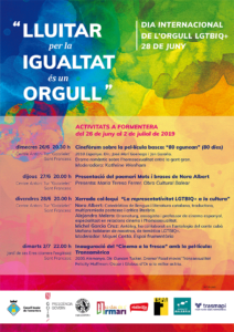 El divendres 28 de juny, dia de l’Orgull, es farà una xerrada col•loqui «La representativitat LGTBI a la cultura». Serà a les 20.00h al Centre «Gabrielet», hi participaran Nora Albert: catedràtica de llengua i literatura catalana, traductora, multipremiada poetessa i crítica literària, Alejandro Melero: dramaturg, assagista i professor de cinema espanyol. Els seus estudis acadèmics s’han especialitzat en les relacions entre el cinema i l’homosexualitat. Michel Garcia Cruz, antòleg, ha col•laborat i compilat l’antologia del conte cubà «Mañana hablarán de nosotros», sobre temàtica LGTBI. Presentarà i moderarà el col•loqui Miquel Costa, d’Espai Frumentària.