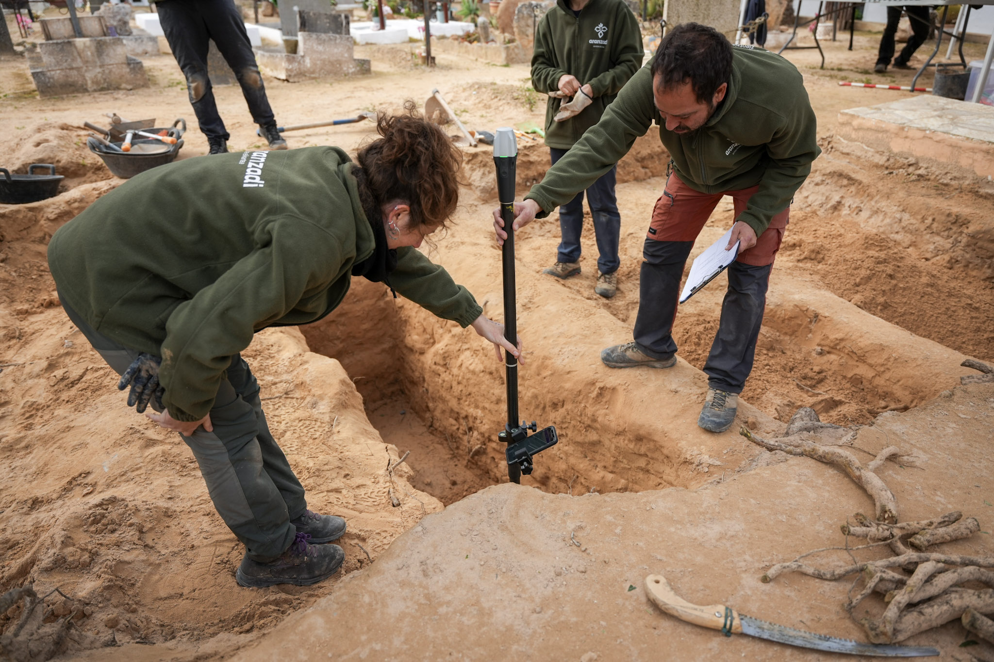 Los trabajos están siendo ejecutados por el equipo técnico Aranzadi-ATICS y dan continuidad a las actuaciones realizadas en este mismo enclave en 2021 y 2023, campañas que permitieron documentar restos compatibles con víctimas del penal e identificar a seis personas, cuyos restos pudieron ser devueltos a sus familias para recibir una sepultura digna.