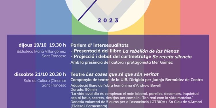 El Consell de Formentera ha presentado hoy el programa de actos que ha organizado con motivo de la celebración del Día Internacional por la Despatologización Trans y el Día de la Conciencia para la Comunidad Intersexual, que se celebran este mes de octubre, y que incluye la presentación del libro ‘La rebelión de las hienas’, proyecciones, debates y música.