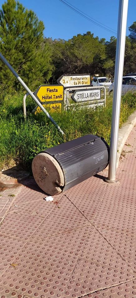 Las papeleras afectadas han sido rápidamente reparadas por operarios del Ayuntamiento de Sant Antoni, municipio que se engalana para sus fiestas patronales que arrancan mañana jueves.