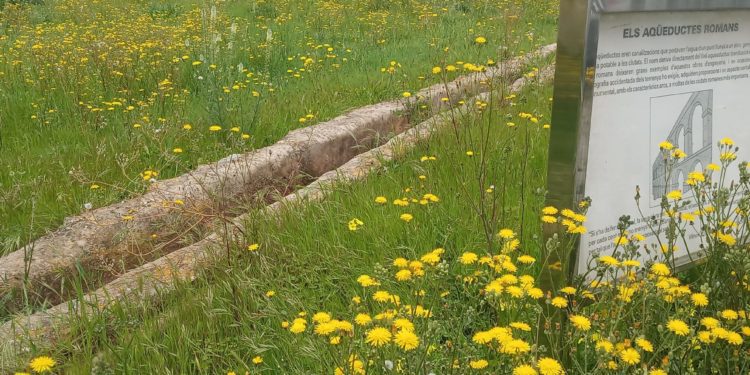 Este acueducto romano señalizado como elemento patrimonial está junto a una urbanización y protegido por una reja. «De modo que ya no resulta del todo fácil verlo o ni siquiera darse cuenta de que se encuentra ahí», indican a Noudiari. Ahora, como señala la lectora, está «comido» y «oculto por la maleza y apenas se puede entrever qué hay ahí».