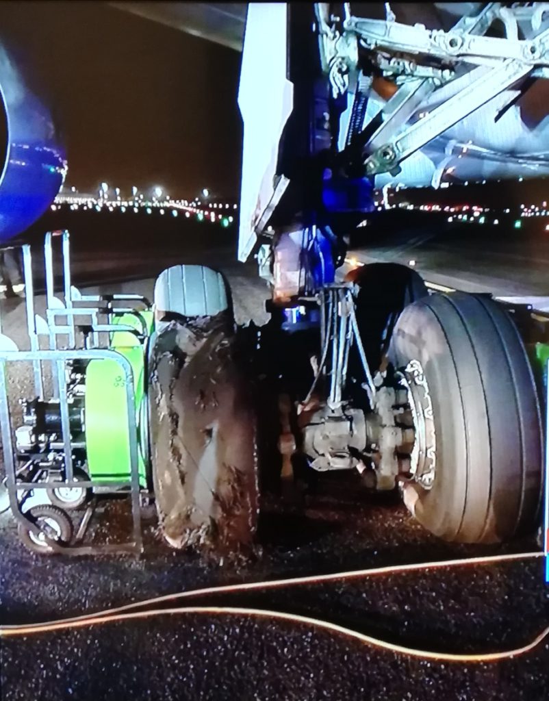 @Noudiari / El avión de la compañía Air Canada que ayer tuvo que efectuar un aterrizaje de emergencia en Madrid-Barajas, sufrió algunos daños en el tren de aterrizaje e la maniobra.