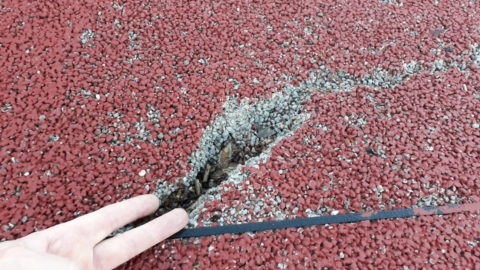 La infraestructura se encuentra «llena de grietas y agujeros», con el consiguiente peligro para los niños y niñas que utilizan a diario estas instalaciones.