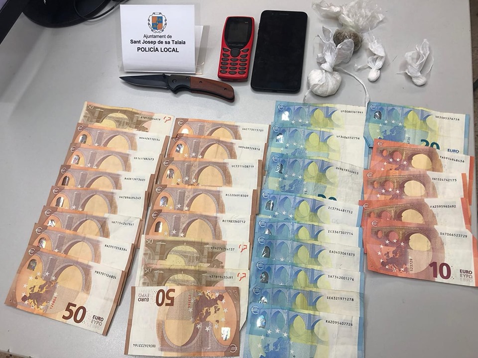 En el registro, hallaron que transportaba 15 gramos de cocaína, cuatro de marihuana y un total de 1.040 euros de procedencia desconocida, explica la Policía Local en su cuenta de Facebook.