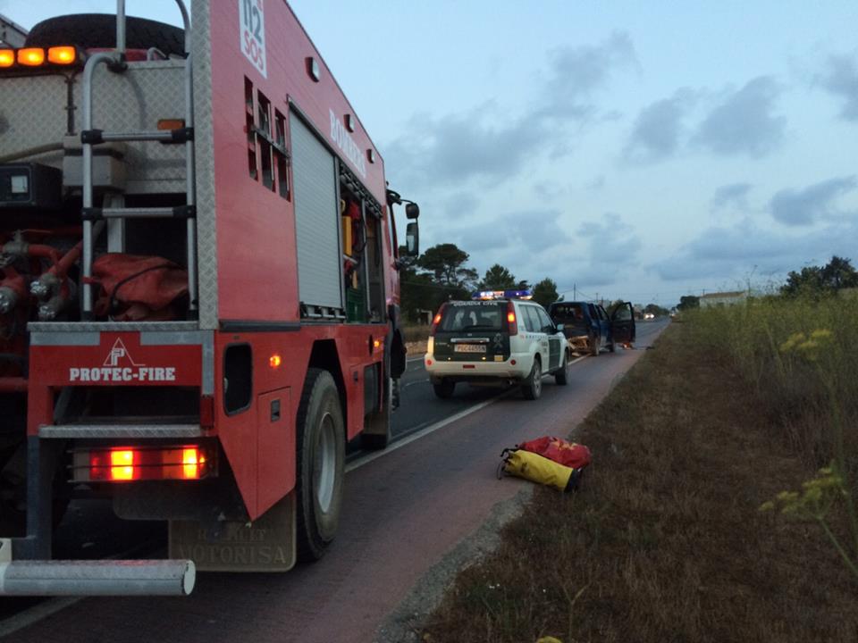 Los Bomberos de Formentera y la Guardia Civil en el lugar del accidente.