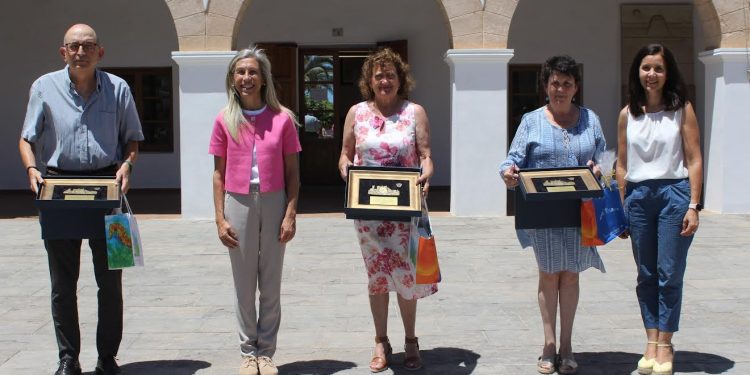 El Ayuntamiento de Santa Eulària ha rendido homenaje este mediodía a tres profesores de centros públicos del municipio que se han jubilado este año. Se trata de Begoña Canet González, actualmente en el CEIP Sant Carles; Julio F. Díez de la Lastra Bielsa, profesor en el IES Xarc, y Eduvigis Sánchez Meroño, exdirectora y profesora del colegio Puig d’en Valls.