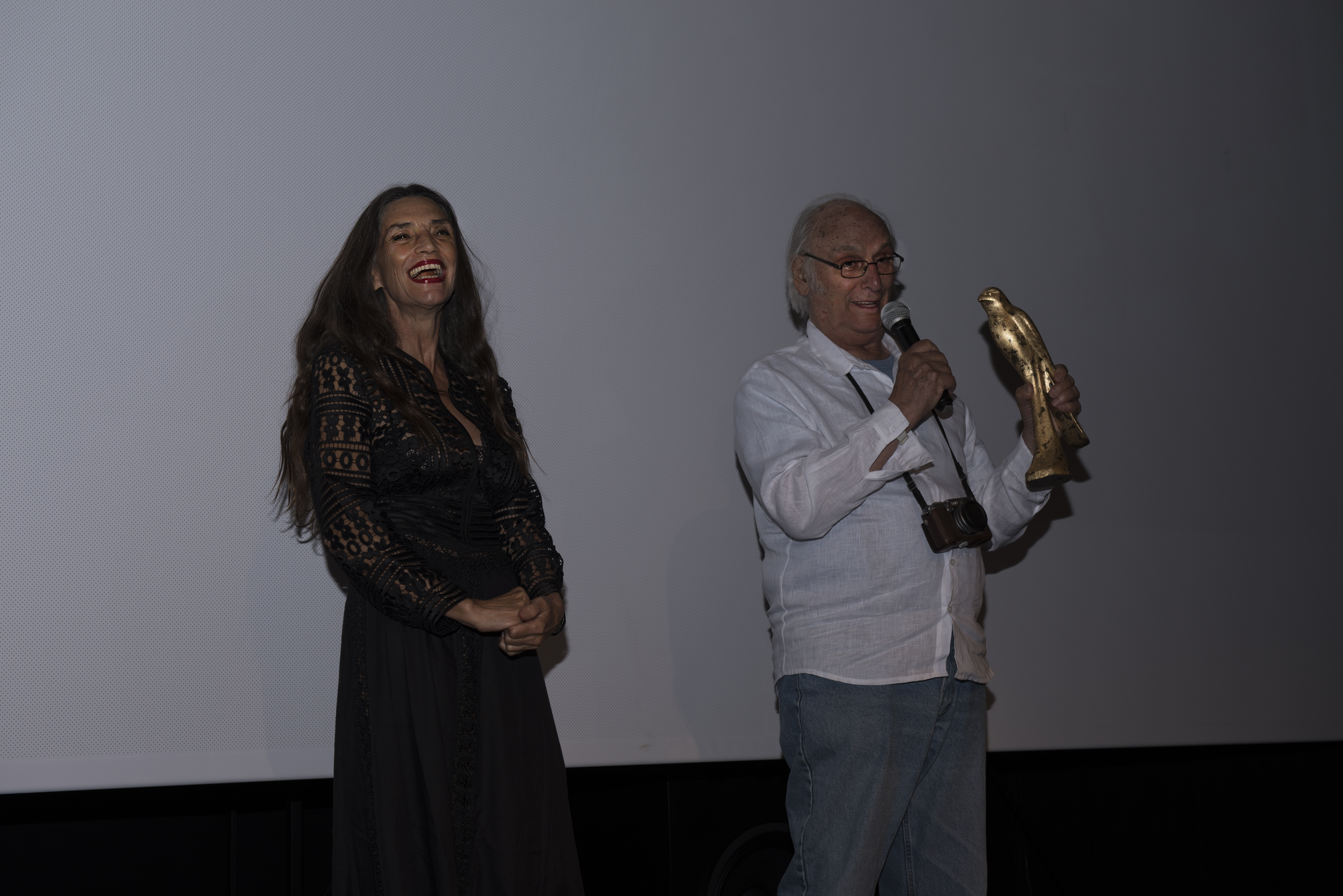 @Noudiari / El Centro Cultural Can Jeroni acogió la noche del sábado el homenaje a Carlos Saura, con la proyección de la película «Tango» y con la entrega de un Falcó D´Or, premio del Ibiza Film Festival, al director. La encargada de dárselo fue Ángela Molina, quien comentó que espera poder rodar alguna película con el director aragonés, ya que a lo largo de ambas dilatadas carreras nunca han coincidido.
