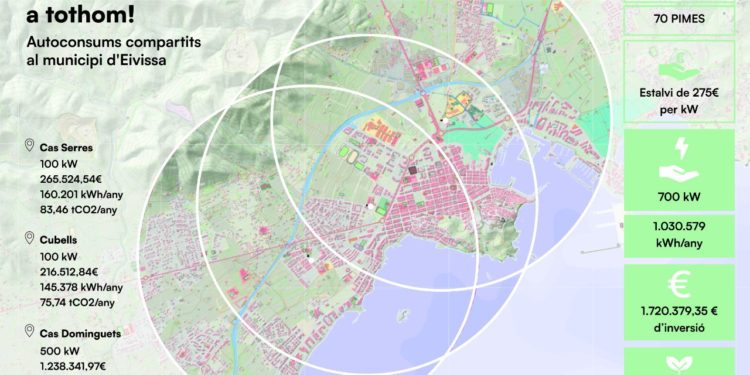Estos autoconsumos compartidos, según ha informado el ejecutivo balear en una nota, beneficiará a un total de 280 viviendas y 70 pimes del municipio y permitirá dejar de emitir hasta 536,93 toneladas de CO2 anuales.