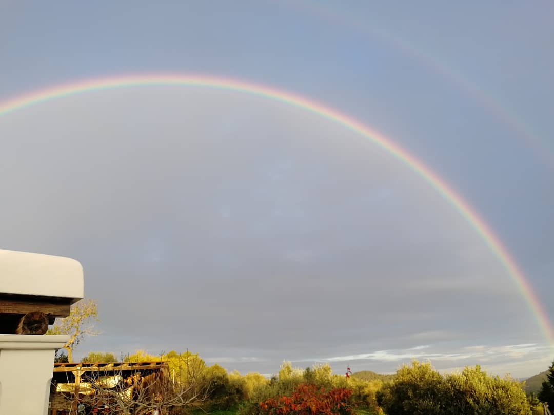 @Noudiari / Los vecinos de Ibiza han despertado este domingo bajo un impresionante arcoíris, que en algunos momentos de la mañana ha sido doble y se ha podido ver desde diferentes puntos de la isla. Pese a que la lluvia todavía no había hecho acto de presencia, la bruma matinal ha permitido que se formara este fenómeno y que pudiera verse completo con facilidad. Una bonita estampa que ha quedado inmortalizada en los teléfonos de los más madrugadores.
