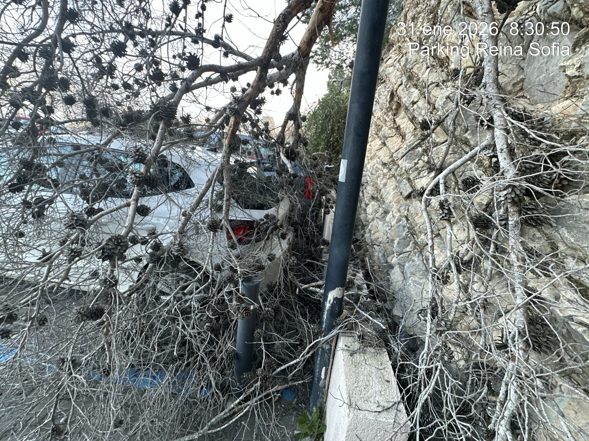 Según ha informado el consistorio, hasta las 9.00 horas únicamente se ha registrado la caída de ramas de un árbol sobre un coche aparcado en el aparcamiento del Reina Sofía, sin que consten heridos.