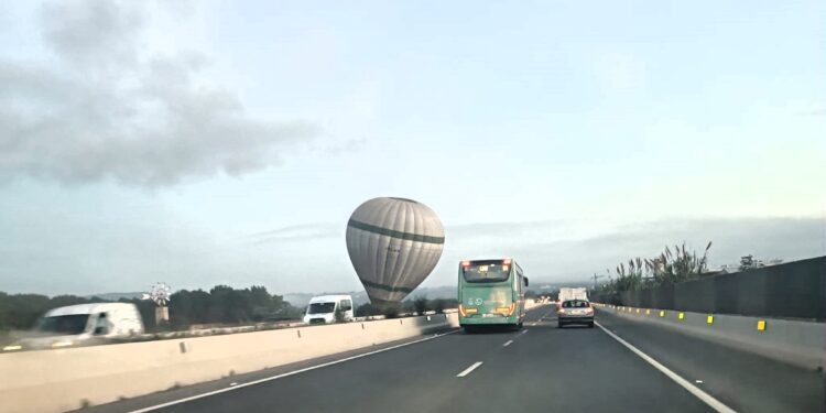 La cercanía de un globo aerostático a la carretera de Santa Eulària, a la altura del desvío de Ca na Negreta, ha dejado esta mañana una imagen en la que la realidad óptica hace que parezca que emerge desde el mismo asfalto. sobre la calzada y entre coches. Sin embargo, el globo se levanta de un terreno que se encuentra junto a la vía. La foto está tomada a las 7,55 horas de hoy, y no es la primera vez que un globo de estas características sorprende a los conductores en este mismo lugar. El pasado 4 de octubre se dio una situación similar también en la zona de Ca na Negreta, con la particularidad de que en aquella ocasión los conductores pensaron que el globo había sufrido un accidente, puesto que en las imágenes tomadas desde la carretera daba la impresión de que la aeronave se estrellaba en un bosque de pinos, como puede apreciarse en este enlace. A raíz de esta primera publicación, numerosas personas se quejaron de que los globos que operan por la zona centro de la isla aterrizaban con frecuencia en terrenos particulares sin permiso alguno y a veces lo hacían incluso sobre bancales que estaban sembrados.