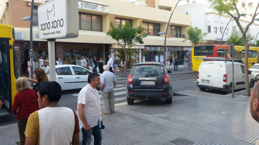 Algunos conductores, tanto de motos como de coches, han decidido pasar por encima de la acera para seguir su camino, como se aprecia en una de las imágenes que acompañan este texto.