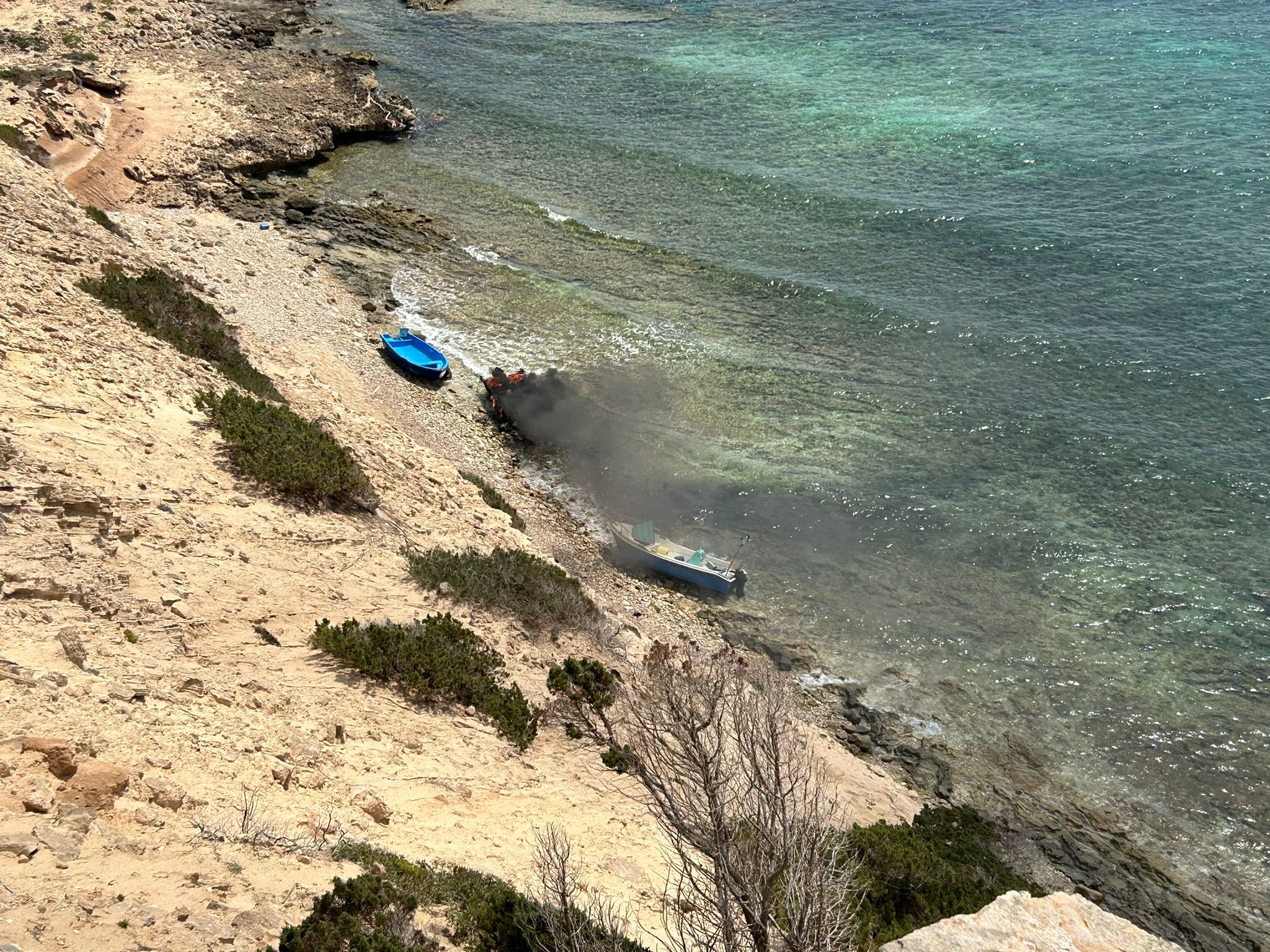 Los agentes han localizado al grupo de 14 hombres inmigrantes este domingo en torno a las 3.15 horas. La segunda patera de la jornada en Baleares ha sido notificada hacia las 12.10 horas en la zona de Es Caló de Formentera y en este bote viajaban siete personas, también de origen magrebí.
