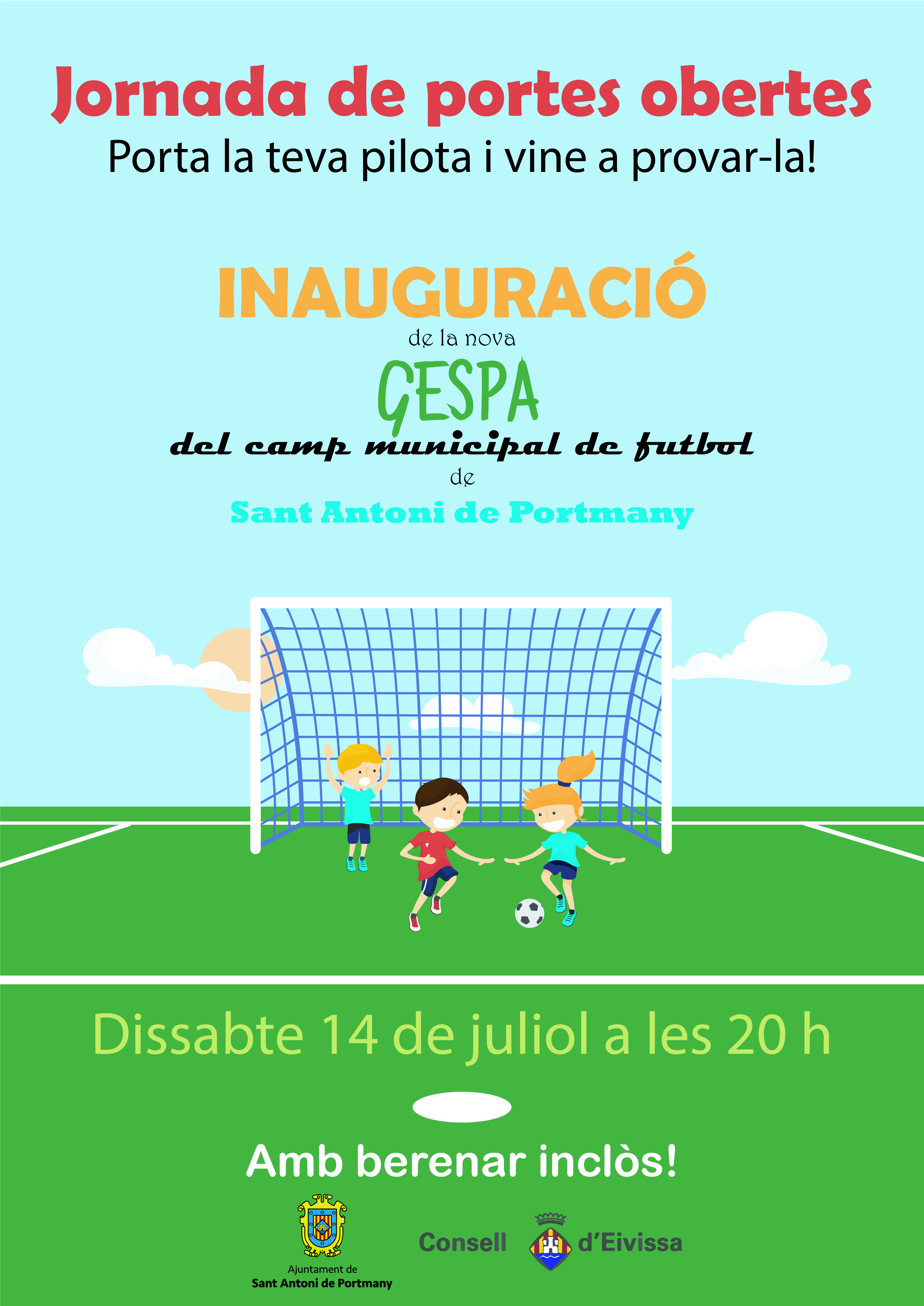 @Noudiari / El Ayuntamiento de Sant Antoni ha organizado una jornada de puertas abiertas en el campo municipal de fútbol el próximo sábado por la tarde, a partir de las 20 horas. El objetivo de esta jornada es que niños y adultos puedan disfrutar del nuevo césped y compartir una merienda y algún tiempo de ocio. Así, se sugiere a los pequeños que prueben su pelota acompañados por sus amigos en el nuevo campo.