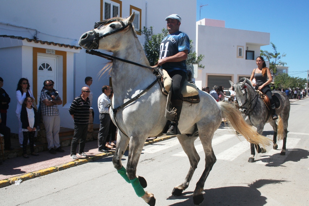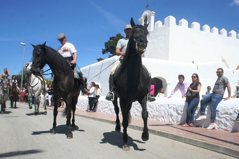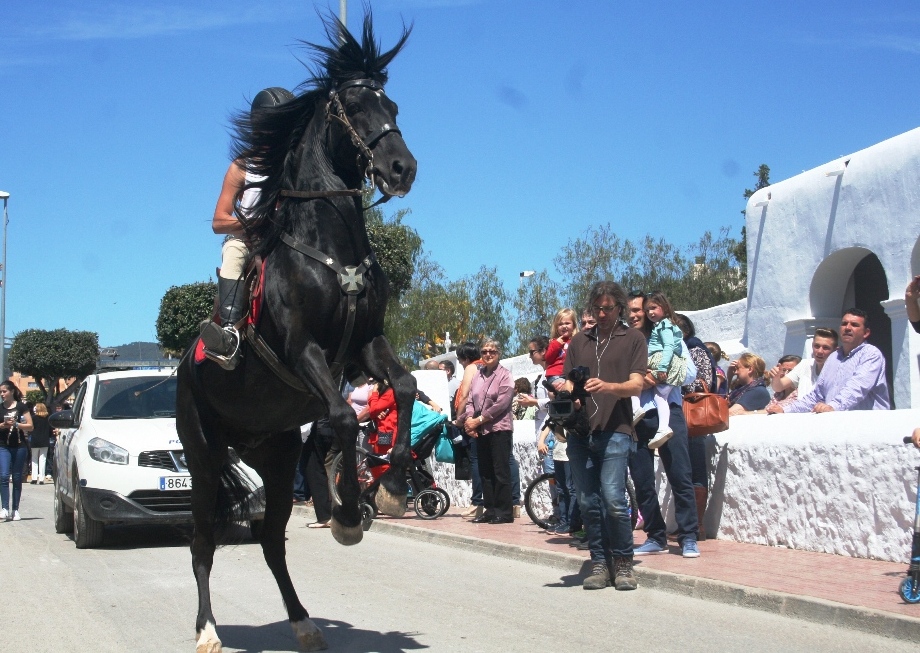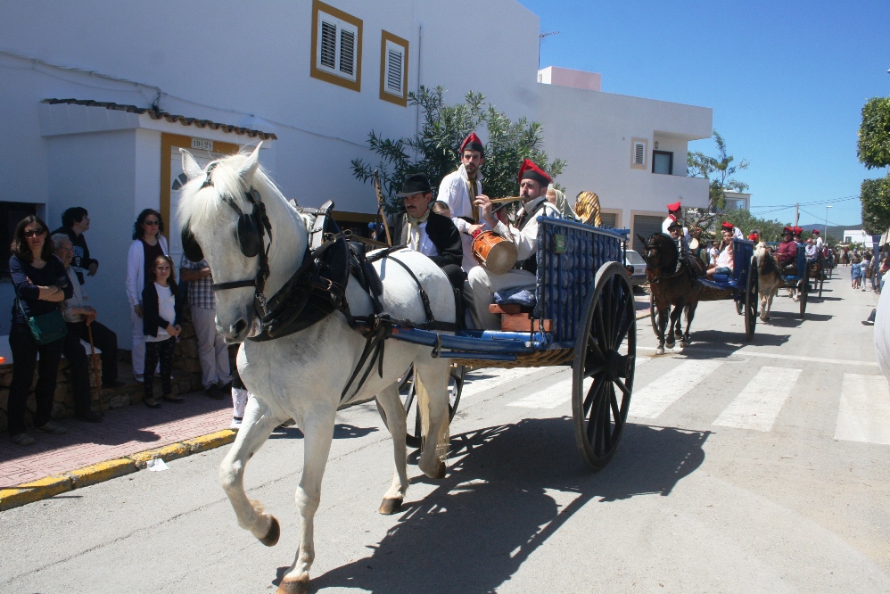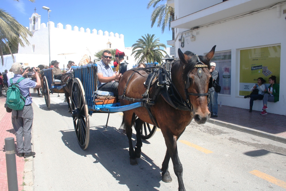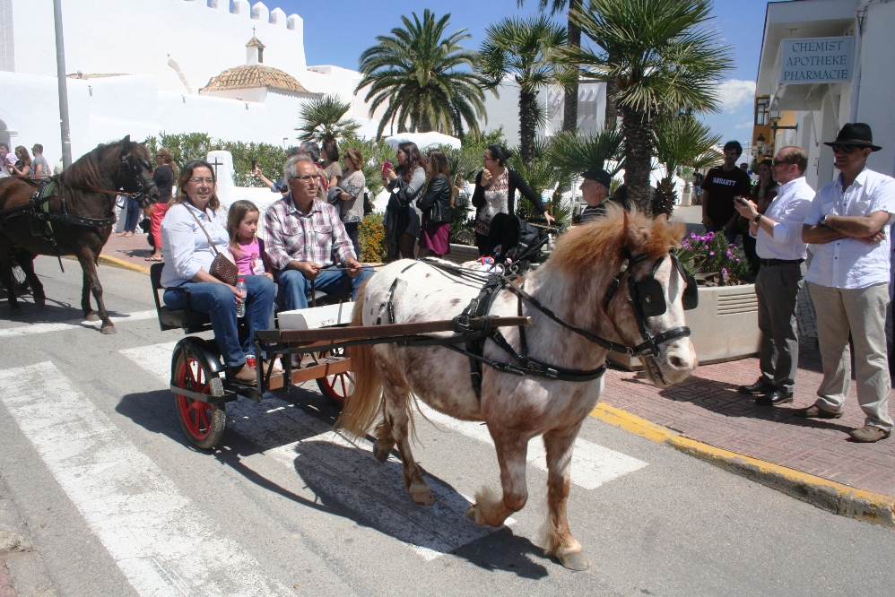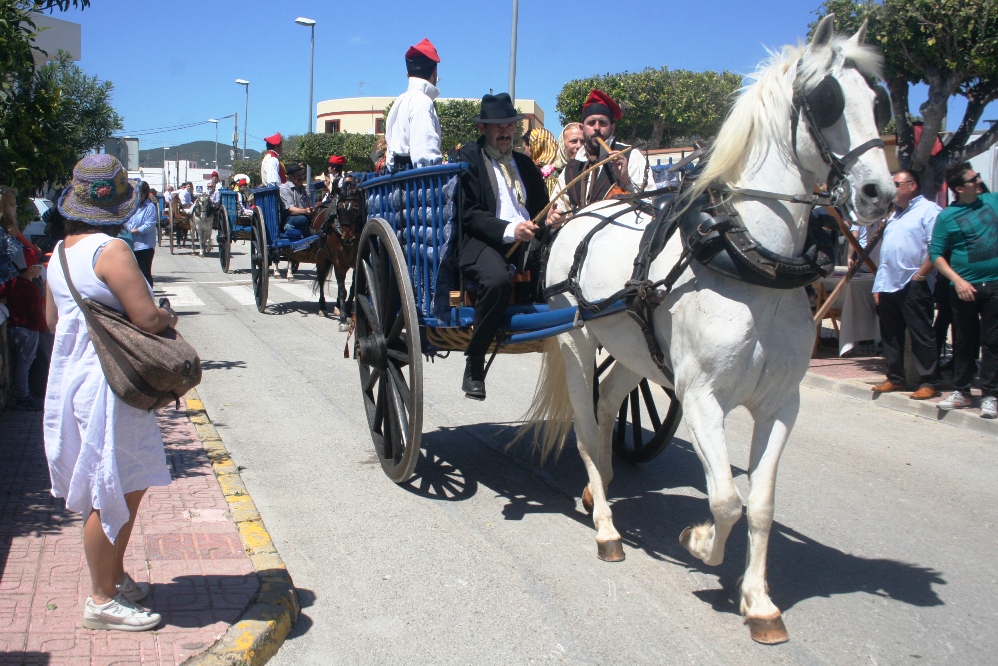 La jornada festiva, que estuvo acompañada por el buen tiempo, arrancó a las 11.00 horas con la misa solemne y la posterior procesión alrededor de la iglesia. Después fue el turno del desfile de carros antiguos y caballos a cargo de la Associació de Carreters de Sant Josep de sa Talaia que, como siempre, llevaban de pasajeros a numerosos niños.