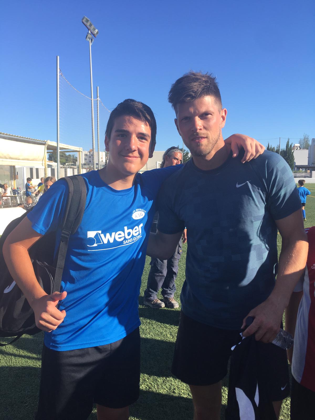 @Noudiari / El delantero del Ajax de Amsterdam Klaas-Jan Huntelaar, que militó también en las filas del Real Madrid, y que esta temporada ha alcanzado las semifinales de la máxima competición continental con su actual equipo, se encuentra en Ibiza y ha estado en el campo del Santa Gertrudis, donde se ha fotografiado con algunos de los futbolistas del club de Fruitera, como se aprecia en las imágenes que acompañan este texto.