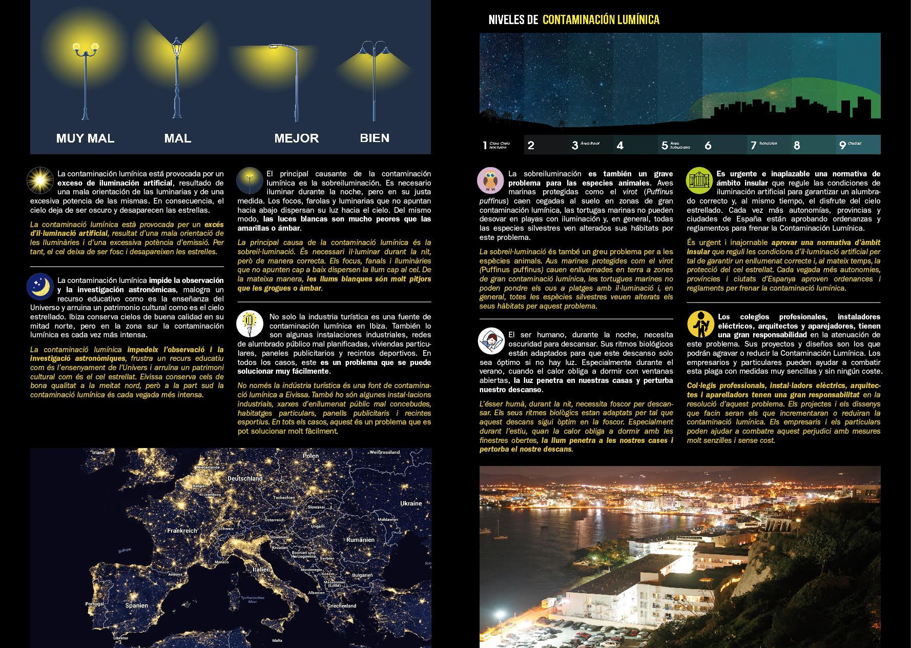 @Noudiari / La Agrupación Astronómica de Ibiza (AAE) ha iniciado una campaña informativa para prevenir la contaminación lumínica tanto en las construcciones públicas como privadas. Actualmente, la contaminación lumínica es una grave amenaza para la observación y estudio del cielo nocturno, porque la luz artificial «borra» las estrellas del firmamento y representa también graves perjuicios medioambientales.