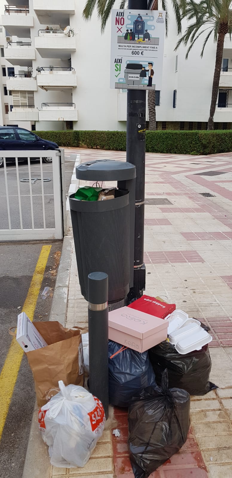 Afirma también que los carteles (como se puede ver en una de las fotos) que recientemente han puesto «no sirven para nada y encima en catalán, cuando deberían ir escritos en inglés aunque eso de igual porque siguen dejando ahí la basura». Propone como solución, multar a los turistas que dejen basura en la calle.